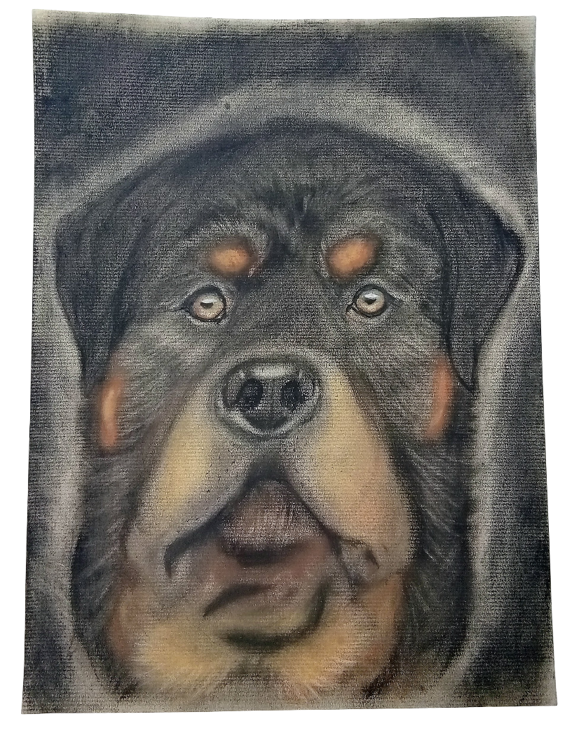 Black/Brown Charcoal Rottweiler 9x12 inch Original Drawing Art By: Doug's Doodles - Option of Frame