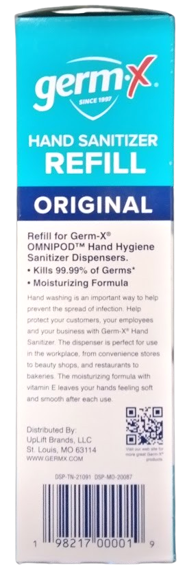 Eliminate 99.9% of germs in high traffic areas with Germ - X OmniPod Hand Sanitizer Refill. Made to fit exactly into the Germ - X OmniPod Hand Sanitizer Dispenser; installation is fast and easy under 5 minutes. This refill also is made 2x the capacity than conventional hand sanitizer refills, making it longer lasting.