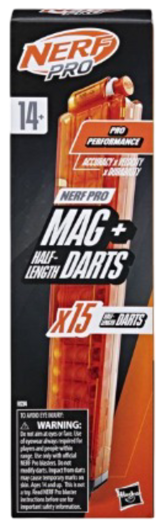 Nerf Pro Mag + Half-Length Darts are lightweight, durable, and compact.